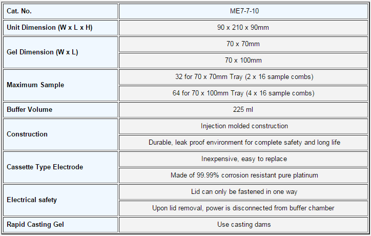 SV = Sample volume for 5mm thick gel (ul) MC = Multi-channel pipette compatible Fast fix slot electrodes, no need rewiring Complete package offers as standard