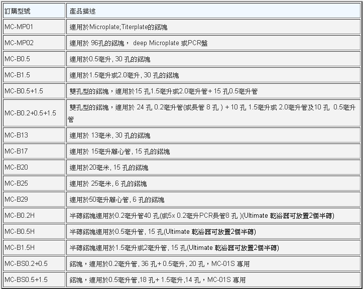 | MC-01S-110/220 | Ultimate Plus冷熱乾浴器, 無附加鋁塊 |